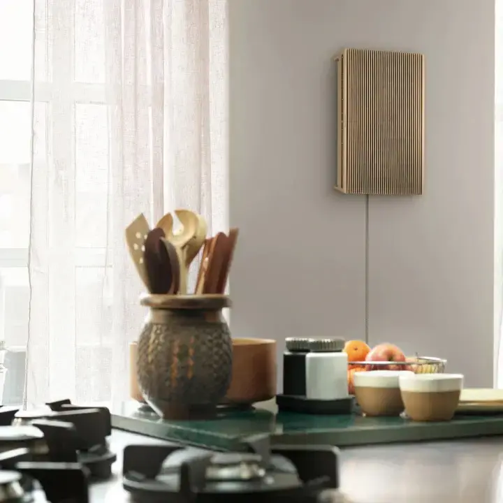 Bang & Olufsen Beosound A9 5th Generation – мощная минималистичная беспроводная акустическая система для дома с Bluetooth, Wi-Fi, Airplay 2, Chromecast. Это уже пятое поколение колонки с культовым дизайном.
